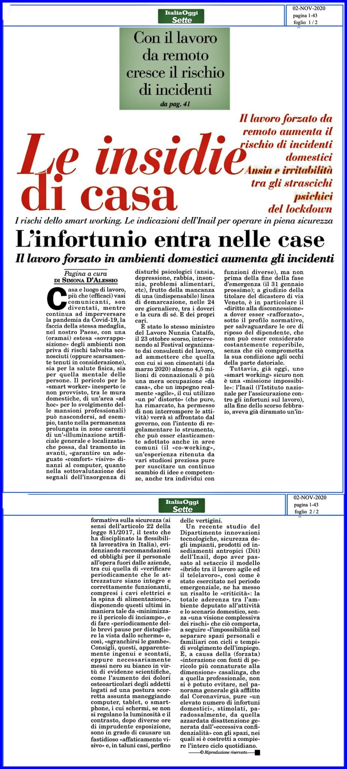 Le insidie di casa – I rischi dello smart working – Indicazioni Inail per operare in sicurezza