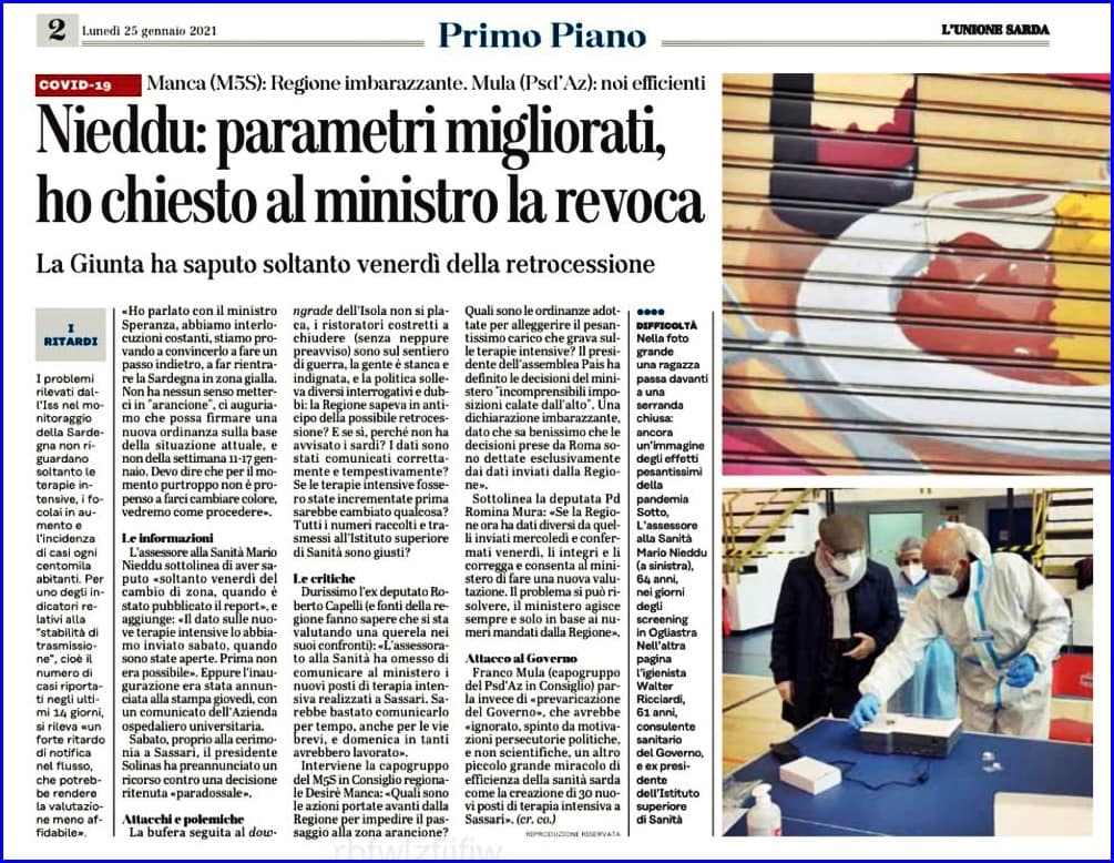 Nieddu: parametri migliorati, ho chiesto al ministro la revoca.