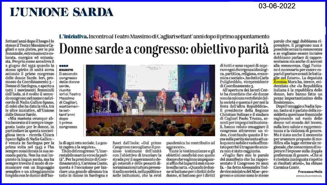 Teatro Massimo di Cagliari, 70 anni dopo il primo appuntamento – Donne sarde a congresso, obiettivo parità